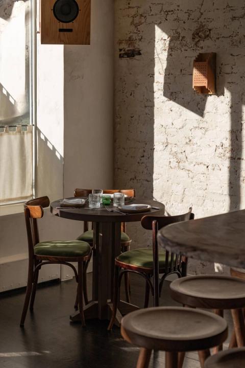 Unique interpretations of Lebanese staples, vegetable-forward dishes, and seasonal cooking bring the food and cocktails to the forefront, and allow the interiors to stay humble and grounded. The interior design is one of composure, reductive in nature, and allowing what the space once was to show through