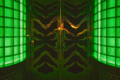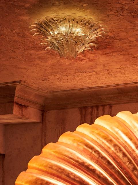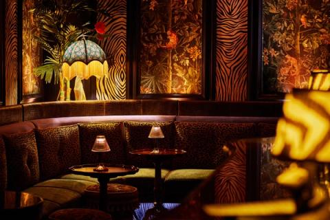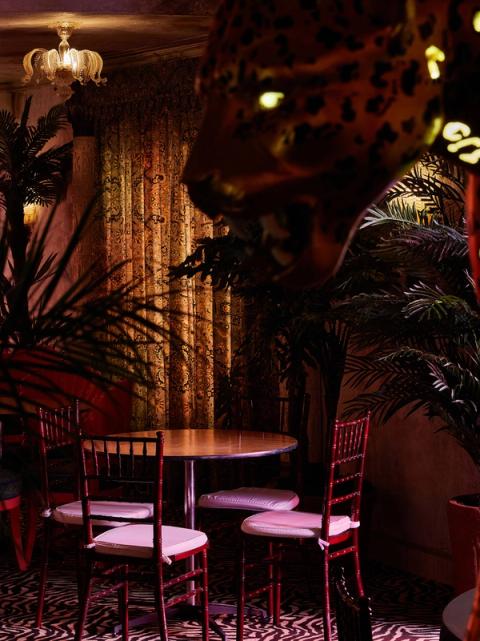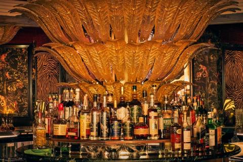 Lou Lou’s Club and Ballroom is one of the{ X} food and beverage options, within The LaFayette Hotel. Anchoring the basement club is a historic clamshell dating back to the hotel’s 1940s heyday. Here, touring jazz acts will take stage and revive the heralded venue. The front of the space is a layered cocktail lounge with a circular bar revolving around a custom, towering Murano light fixture. The ceiling has been draped in concentric circles of red fringe reverberating the circular rhythms of the space. Lou Lou’s is dripping in tassels, zebra prints, crocodile skins, and animal sculptures, eschewing any opportunity for restraint in favor of untamed abundance. The Club and Ballroom invites all to leave their daily routine and foray across era and musical genres.