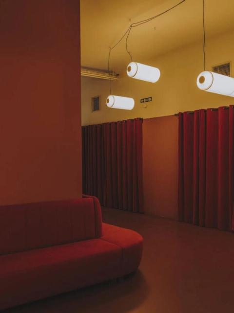 The design of Nica stems from a deeply engrained appreciation for theatre, experience and saturation. The ever-present deep red (furniture, dyed-concrete flooring, drapery, tile, and millwork) creates an immersive color experience, a not so subtle ode to David Lynch’s Twin Peaks. The singular color palette provides a palette for sculptural intervention. Lighting by Santa and Cole occupies the volumes providing a playful, raw and ethereal glow.