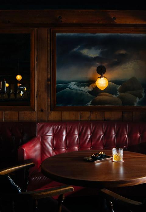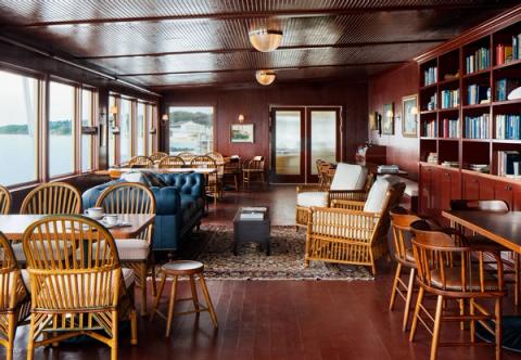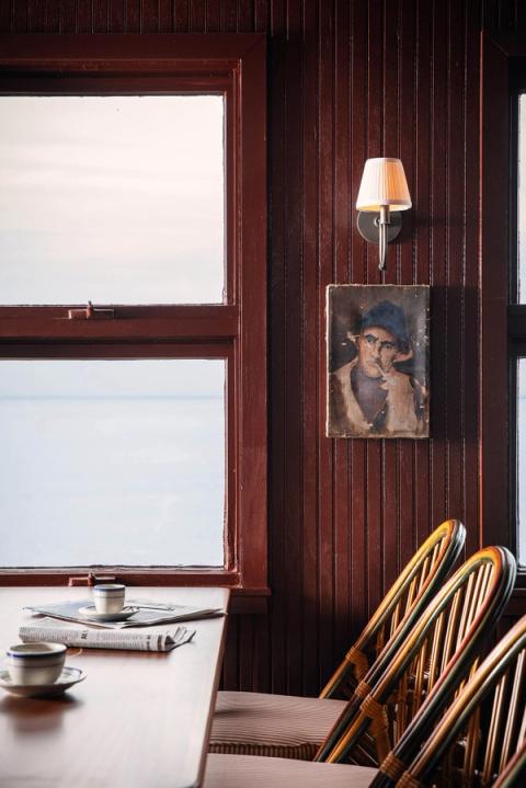 The lively restaurant is anchored by a hard-working 16’ bar that keeps everyone well lubricated. The informal family-style picnic tables and indoor- outdoor dining experience spills out on the deck overlooking Long Island Sound. Using produce and meat from the bounty provided by the North Fork and Sound, the restaurant prepares well-seasoned interpretations of New England classics with food that is fresh and simple. The decor emphasizes the casual and eschews fuss and formality for approachable, full flavored fare. Simple wood tables and chairs balance the exposed ceiling truss, while the classic captain’s chairs around the expansive bar hint at the property’s nautical geography and history. Whitewashed walls complemented by seafaring paintings and ephemera bring a sense of whimsy and utility. The reclaimed hardwood floor has ingrained wear that will only get better with time.