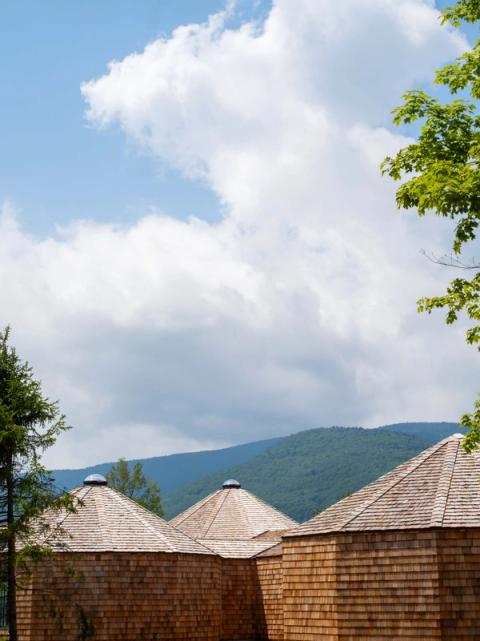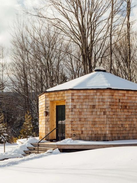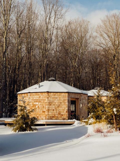 Building upon the whimsical and communal Scribner’s Lodge (2016), the Round’s were imagined to offer a new more intimate, residential experience. A short hike up the hill from the Lodge, the Round’s were designed to provide an immersive experience and holistic appreciation for the surrounding landscape and beauty of the area. Seeking inspiration from the hut systems of Europe and the hand-hewn shingled traditions of the Catskills, the collective team sought to define a new building typology; one that would be in service of reflection and enjoyment of one’s surroundings.