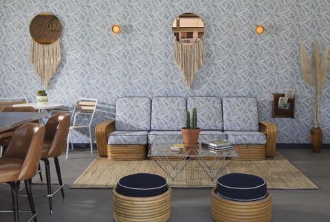The creamy stucco facade overgrown with vines, terra cotta accents, and abundant indigenous plants unabashedly reference the Spanish Mission Revival typologies seen throughout California. Handsomely eccentric furnishings and thoughtful touch points remind us of the cheerful and carefree character of California.